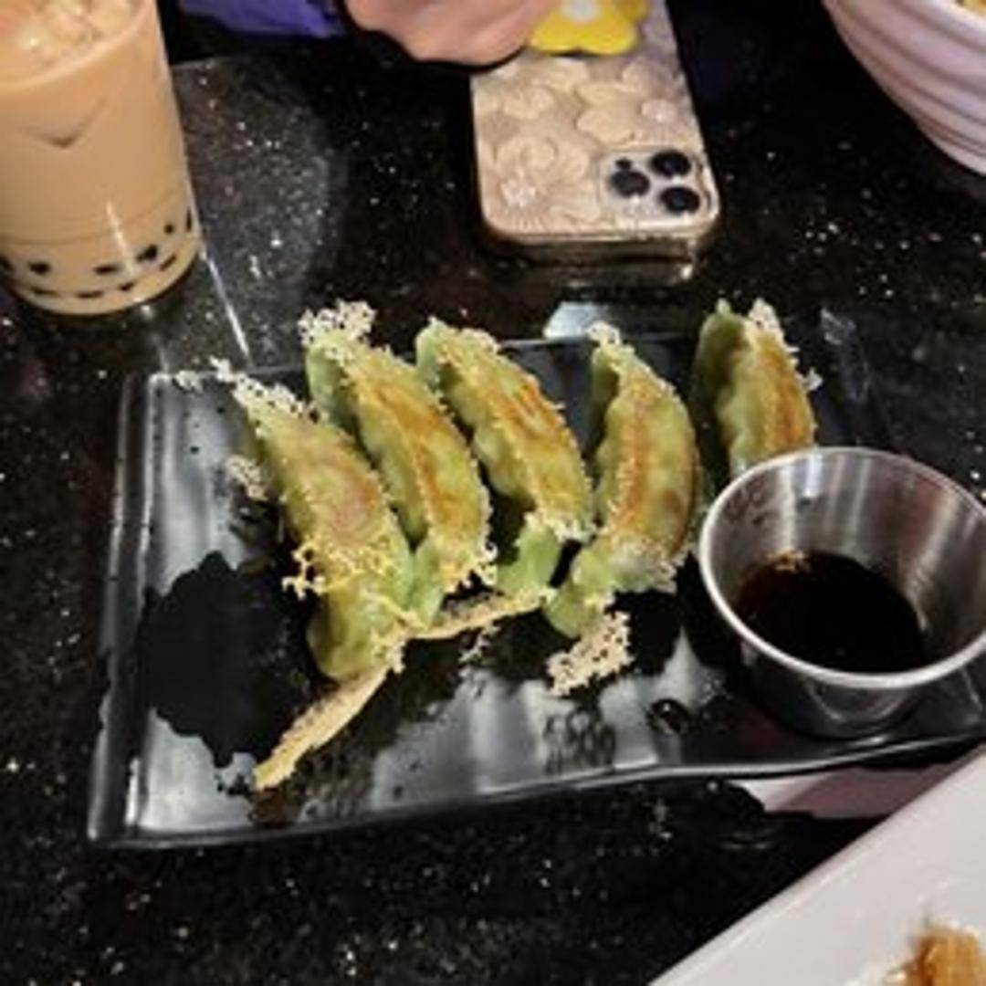 Pan-fried or steamed Japanese dumplings filled with a medley of finely chopped vegetables such as cabbage, carrots, chives, and mushrooms. Served with a dipping sauce, typically a blend of soy sauce, vinegar, and chili oil.