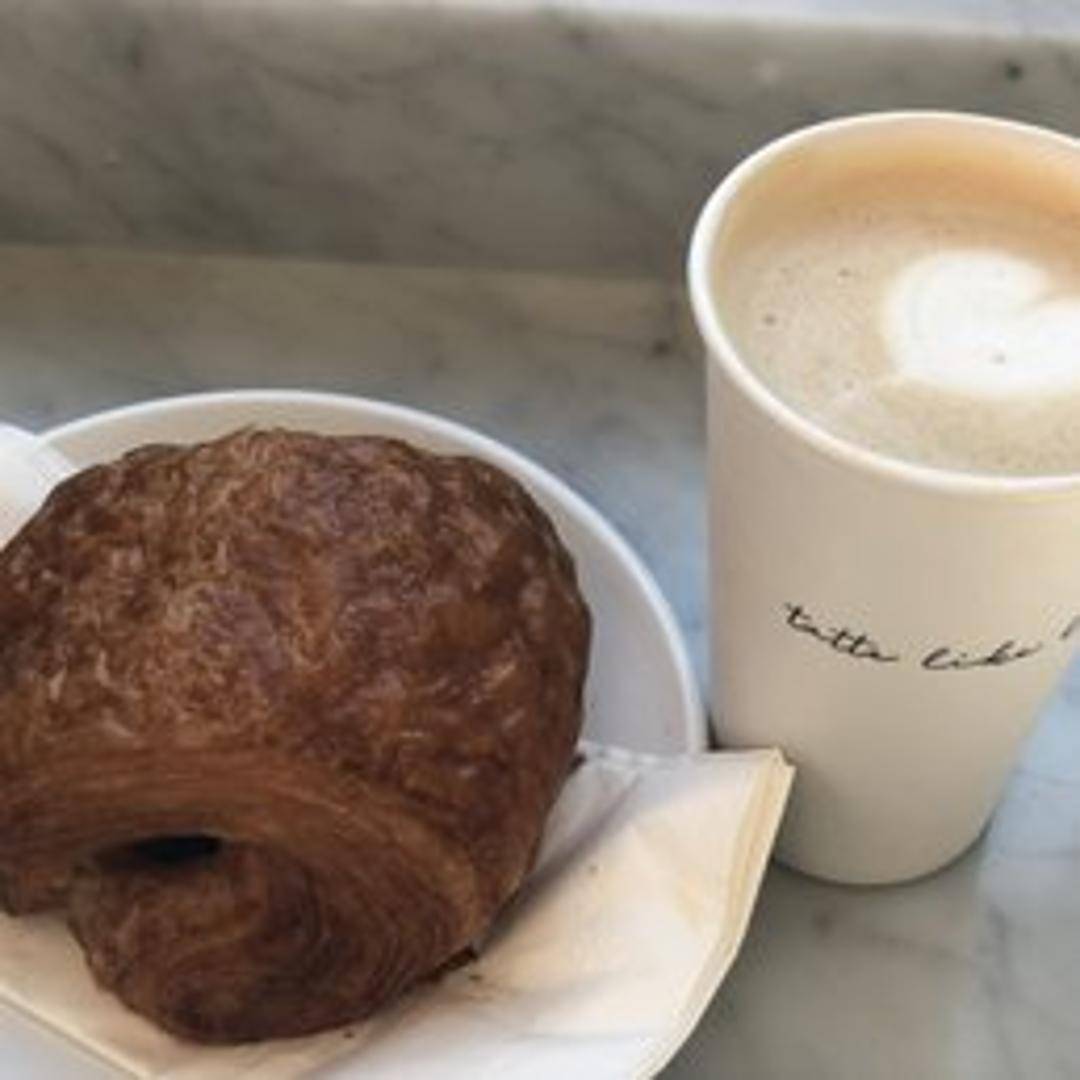 A quintessential French pastry from Tatte's esteemed bakery. This golden-brown, flaky delight is crafted from layers of delicate, buttery croissant dough, expertly wrapped around two generous bars of rich, dark chocolate that melt subtly during baking. It offers a perfect balance of crisp exterior and tender, airy interior with a luscious chocolate core.