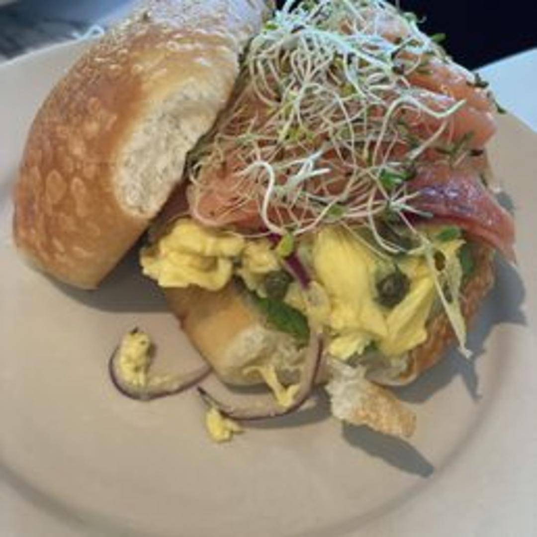 A light yet satisfying sandwich crafted with premium smoked salmon, crisp mixed greens, sliced ripe tomatoes, and a refreshing dill cream cheese spread. All these fresh ingredients are carefully layered on our freshly baked, rustic bread, offering a balanced and flavorful experience perfect for any time of day.