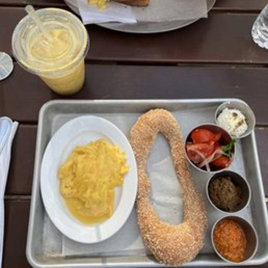 Experience a taste of the Mediterranean with our vibrant Mezze Breakfast. This diverse platter includes creamy hummus, tangy labneh, fresh cucumber and tomato salad, briny olives, and a hard-boiled egg. Served with warm, pillowy pita bread, it’s a wholesome and refreshing start to your day, offering a symphony of flavors and textures.