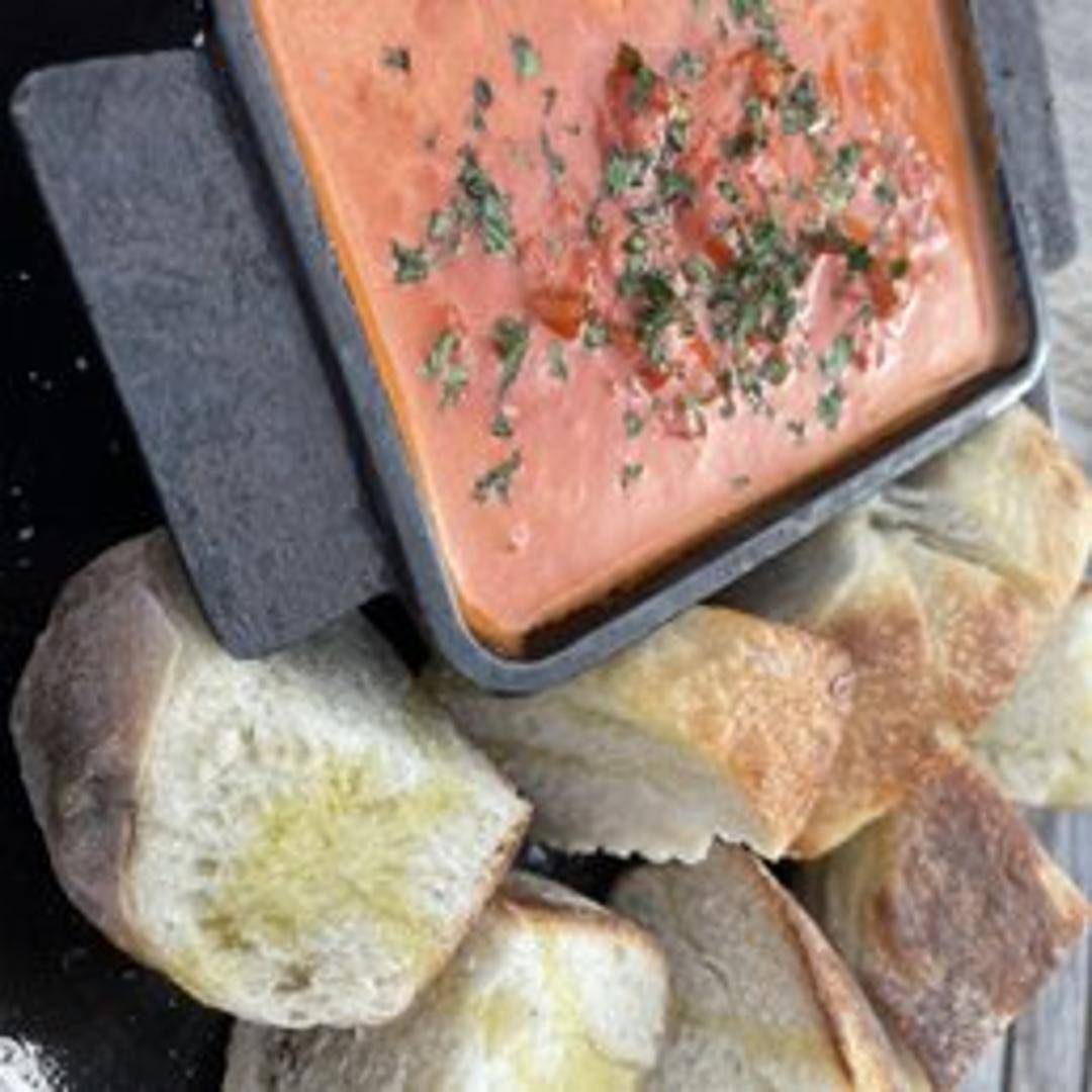 A warm, hearty, and shareable dish baked to perfection and served bubbling hot directly from its namesake vessel. This savory creation typically features a rich combination of melted cheeses, flavorful meats or roasted vegetables, and aromatic herbs, creating a comforting and robust experience ideal for starting your meal or sharing amongst friends.