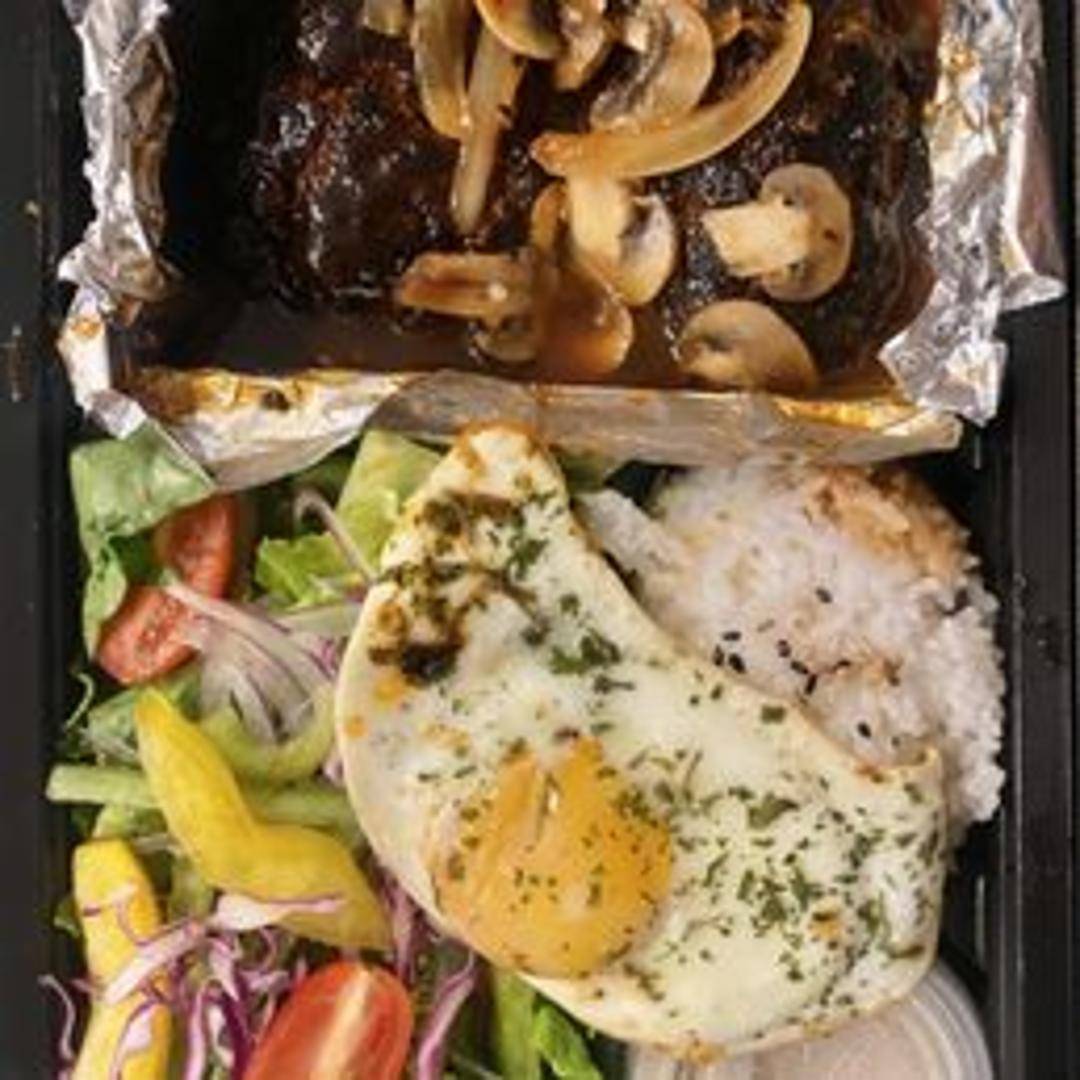 A juicy Japanese-style hamburger steak, often served with a rich and savory sauce. Typically served with a side of rice and vegetables.