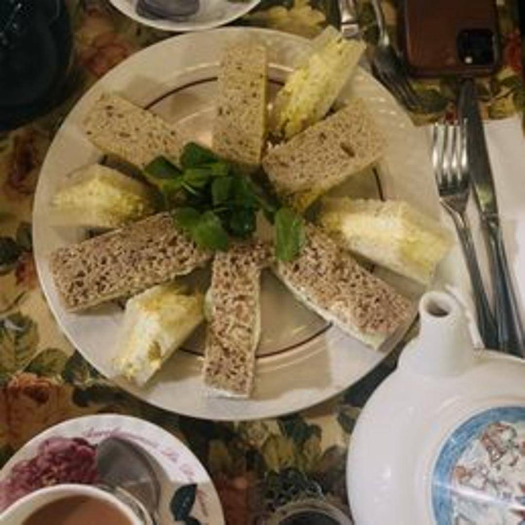 A delightful assortment of finely cut, crustless finger sandwiches. Each sandwich is filled with a classic and flavorful combination of fillings, such as cucumber and cream cheese, egg salad, Coronation chicken, and smoked salmon. Perfect for afternoon tea or a light lunch.