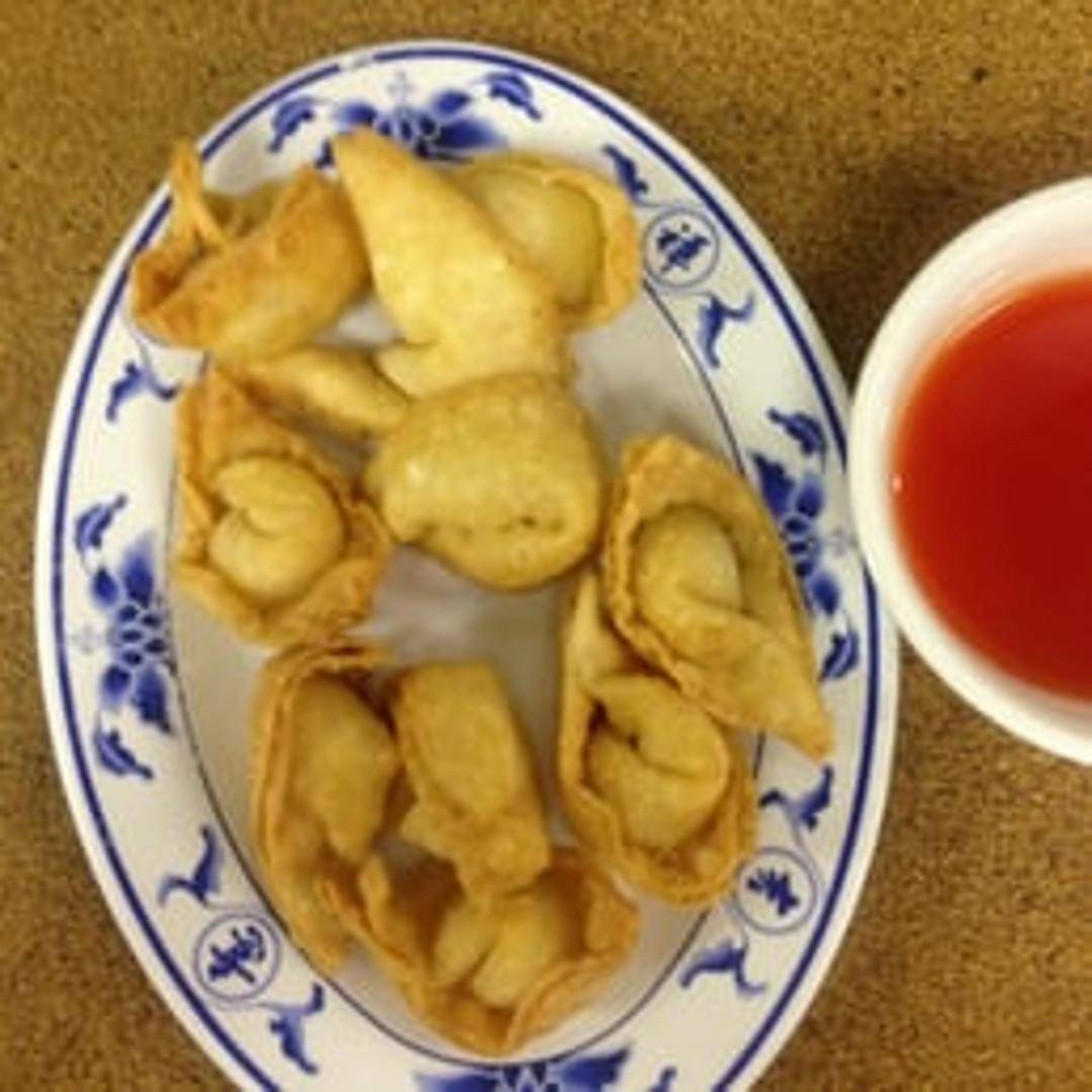 Crispy, deep-fried wontons filled with a creamy mixture of cream cheese and imitation crab meat. Served with a sweet and sour dipping sauce.