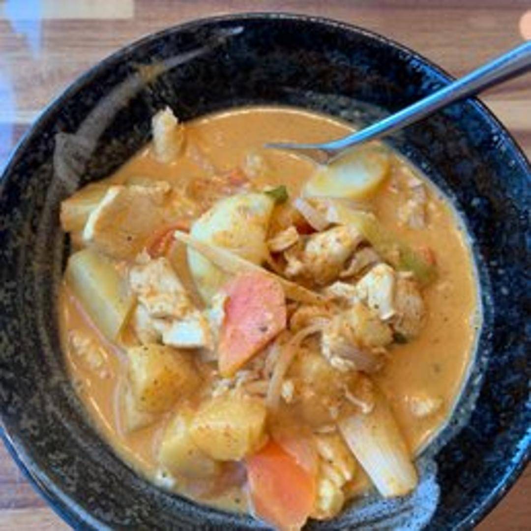 A rich and aromatic Thai curry, gently simmered in creamy coconut milk with a mild yellow curry paste. This comforting dish is prepared with tender potatoes, sweet carrots, and onions, offering a subtly spiced and deeply flavorful experience.