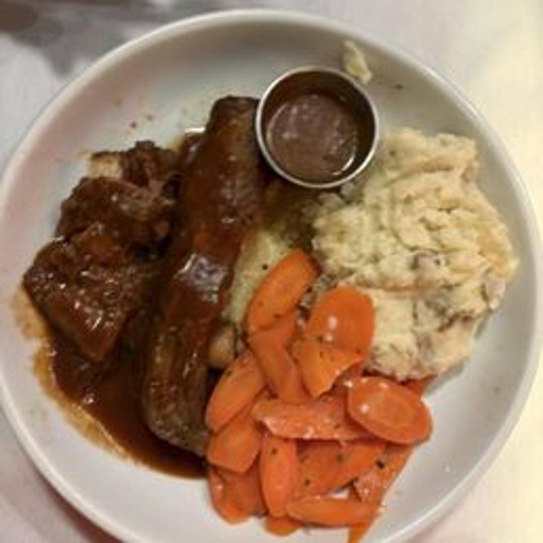 Slow-braised bison short ribs, fork-tender and rich in flavor. Served with creamy mashed potatoes and seasonal vegetables, creating a comforting and satisfying meal. Prepared with a savory braising liquid that enhances the natural richness of the bison.