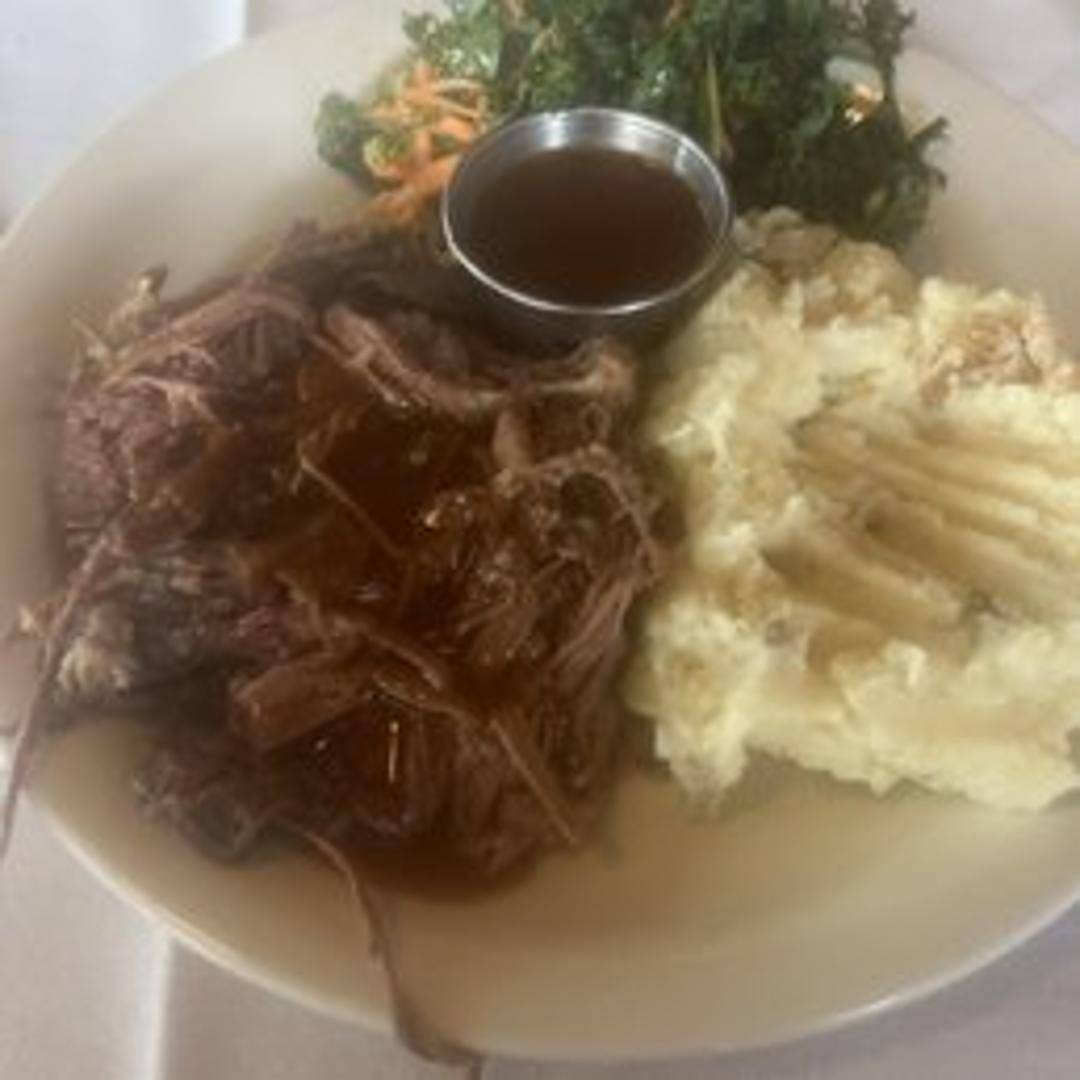 Tender bison pot roast, slow-cooked with vegetables in a rich and savory broth. A classic comfort food made with bison.