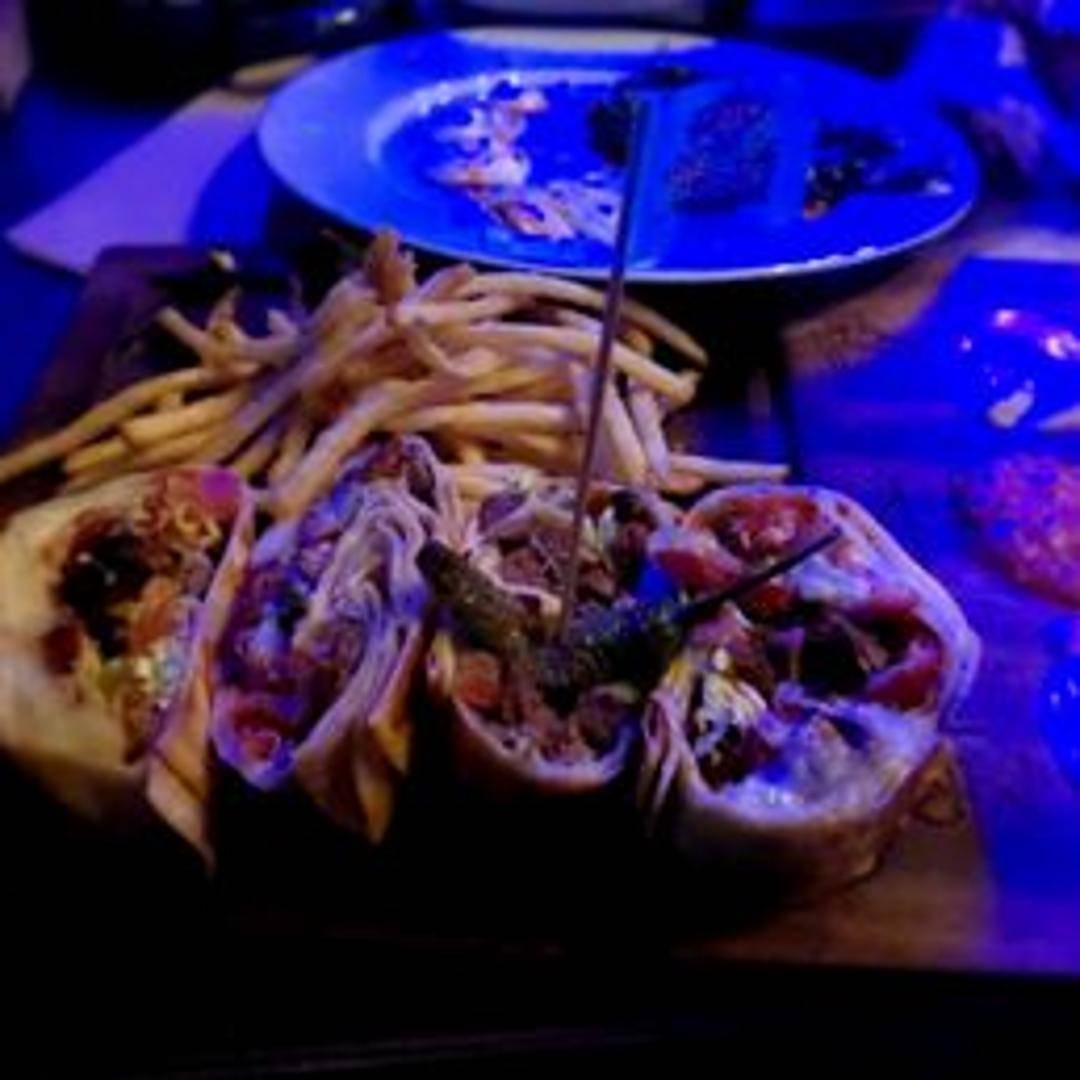 Grilled steak and shrimp, rice, beans, cheese, pico de gallo, and chipotle aioli wrapped in a flour tortilla.