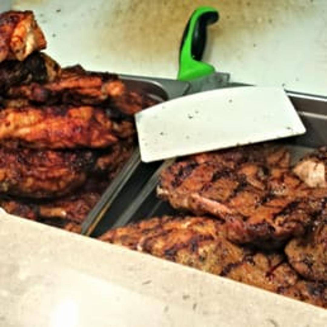 Grilled chicken served over a bed of crisp romaine lettuce, topped with avocado, blue cheese, bacon, hard-boiled egg, tomatoes, and a light vinaigrette dressing.