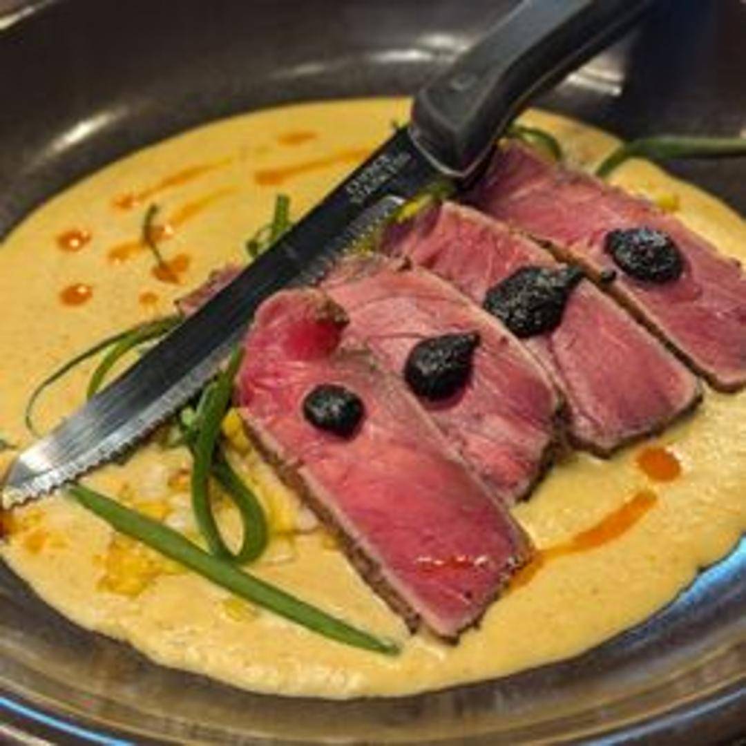 A flavor explosion in every bite! Our Adobo Tuna features sushi-grade tuna marinated in a vibrant and flavorful adobo sauce, a blend of chilies, spices, and herbs. Seared to perfection, creating a delicate crust while keeping the center tender and moist. Served with a side of [Mention specific side dish if available, e.g., cilantro lime rice or grilled vegetables] for a well-rounded and delicious meal.