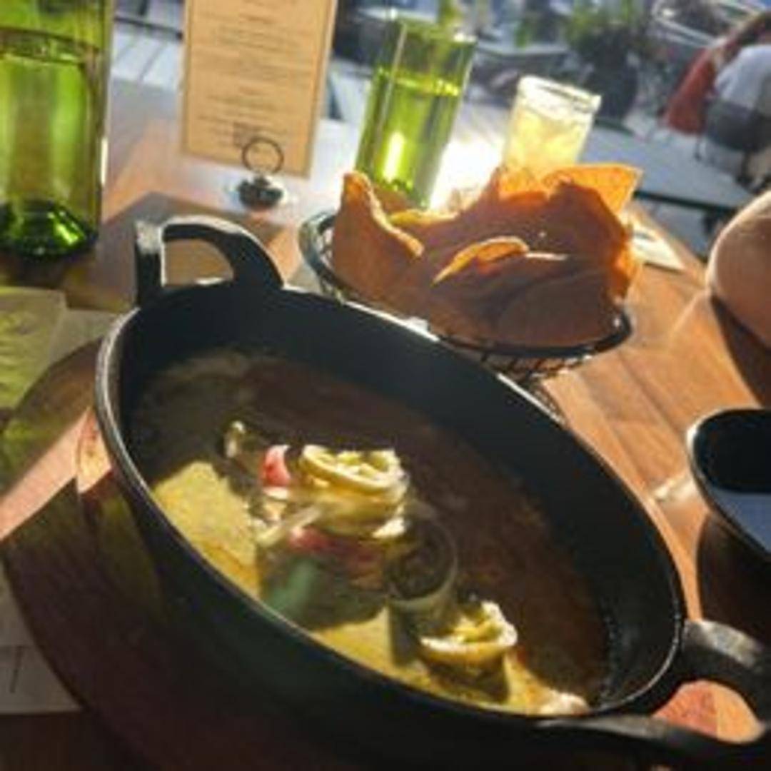 A warm and gooey blend of melted cheeses, typically Oaxaca and Chihuahua, served bubbling hot in a skillet. Often features added ingredients like [Specific Ingredients - Chorizo, Mushrooms, Poblano Peppers - if known, otherwise use general description like: savory chorizo or roasted poblano peppers]. Accompanied by warm, freshly made tortillas for scooping up every last delicious bite. Perfect for sharing (or not!). May contain dairy and gluten. Please inquire about specific ingredients for allergy concerns.