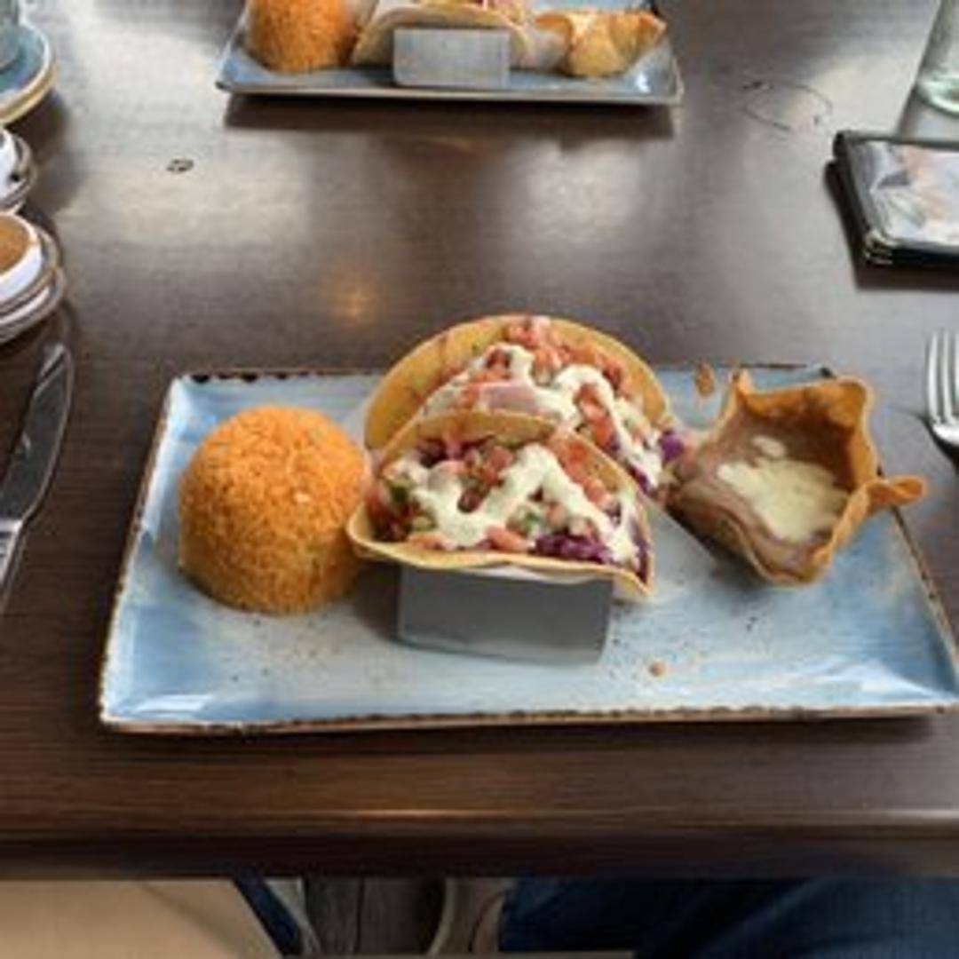 Lightly battered and fried cod, served in a warm flour tortilla with shredded cabbage, pico de gallo, and a creamy chipotle sauce. Served with a side of Mexican rice and refried beans.