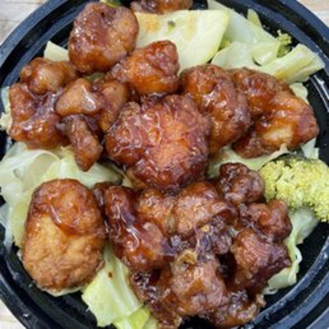 Crispy, lightly battered chicken tossed in a sweet and tangy orange sauce. Served over your choice of rice or noodles and steamed vegetables.