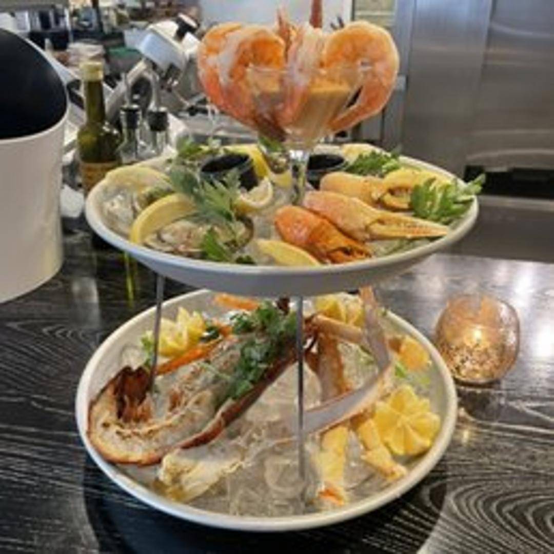 An opulent display of the ocean's finest, our Seafood Tower is an impressive centerpiece designed for sharing. This multi-tiered presentation features an abundant selection of pristine chilled seafood, typically including succulent jumbo shrimp, freshly shucked oysters, sweet crab claws, tender lobster tails, and a rotating selection of clams or mussels. Served with classic accompaniments such as tangy cocktail sauce, delicate mignonette, and fresh lemon wedges, this tower is a celebration of marine delicacy and luxurious indulgence.
