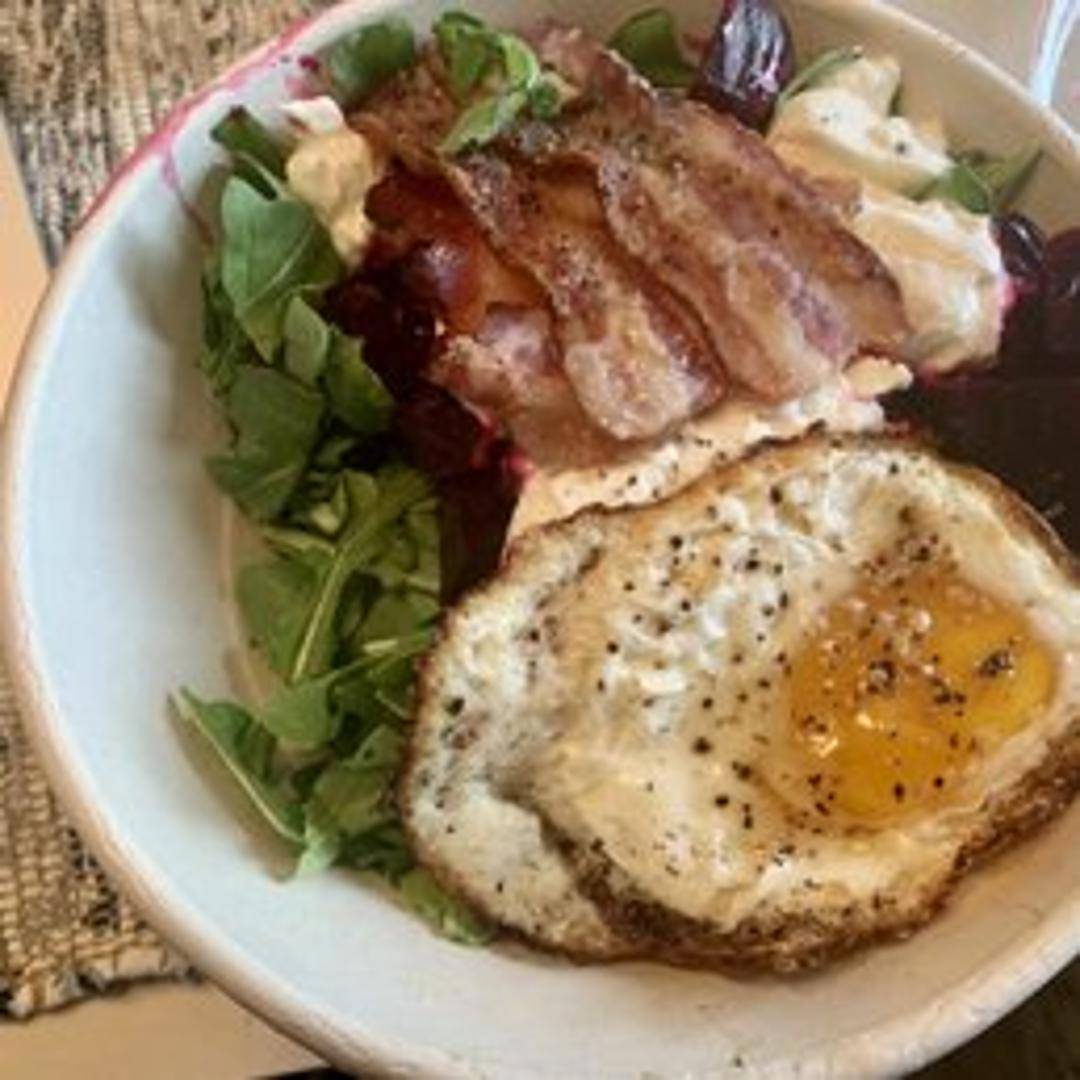 Fresh burrata cheese served atop a bed of mixed greens, with seasonal tomatoes, balsamic glaze, and olive oil.