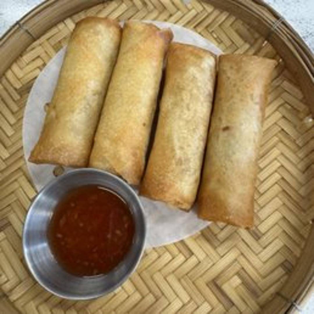 Crispy and golden-brown egg rolls, a classic appetizer. Our egg rolls at Thai 303 are filled with a savory mixture of shredded cabbage, carrots, celery, bean thread noodles, and ground pork (vegetarian option available with only vegetables - specify when ordering). Each roll is expertly wrapped and deep-fried to perfection. Served with a side of our sweet and sour dipping sauce.