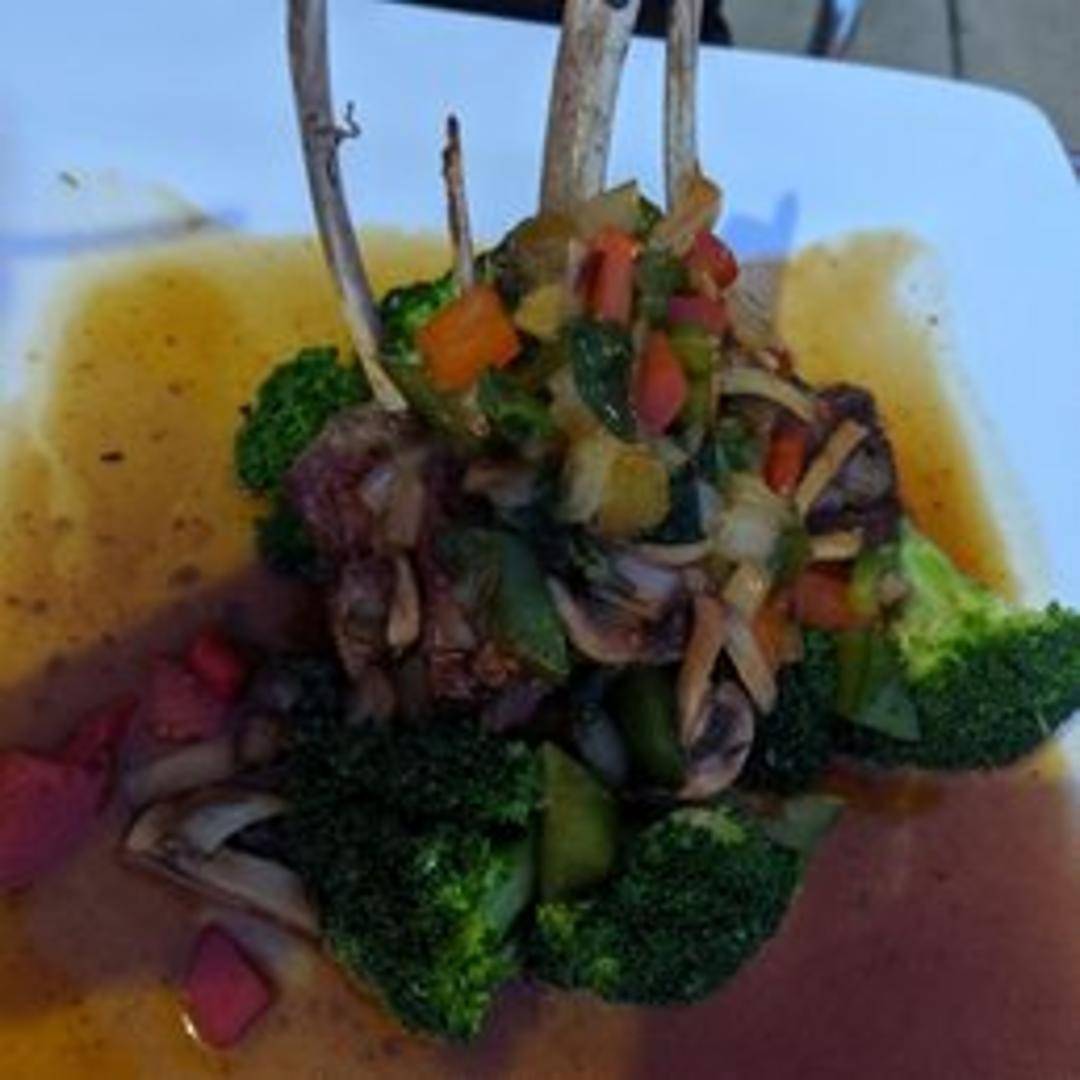 Stir-fried lamb with Thai eggplant, bell peppers, onions, garlic, and basil in a spicy brown sauce. May contain oyster sauce.