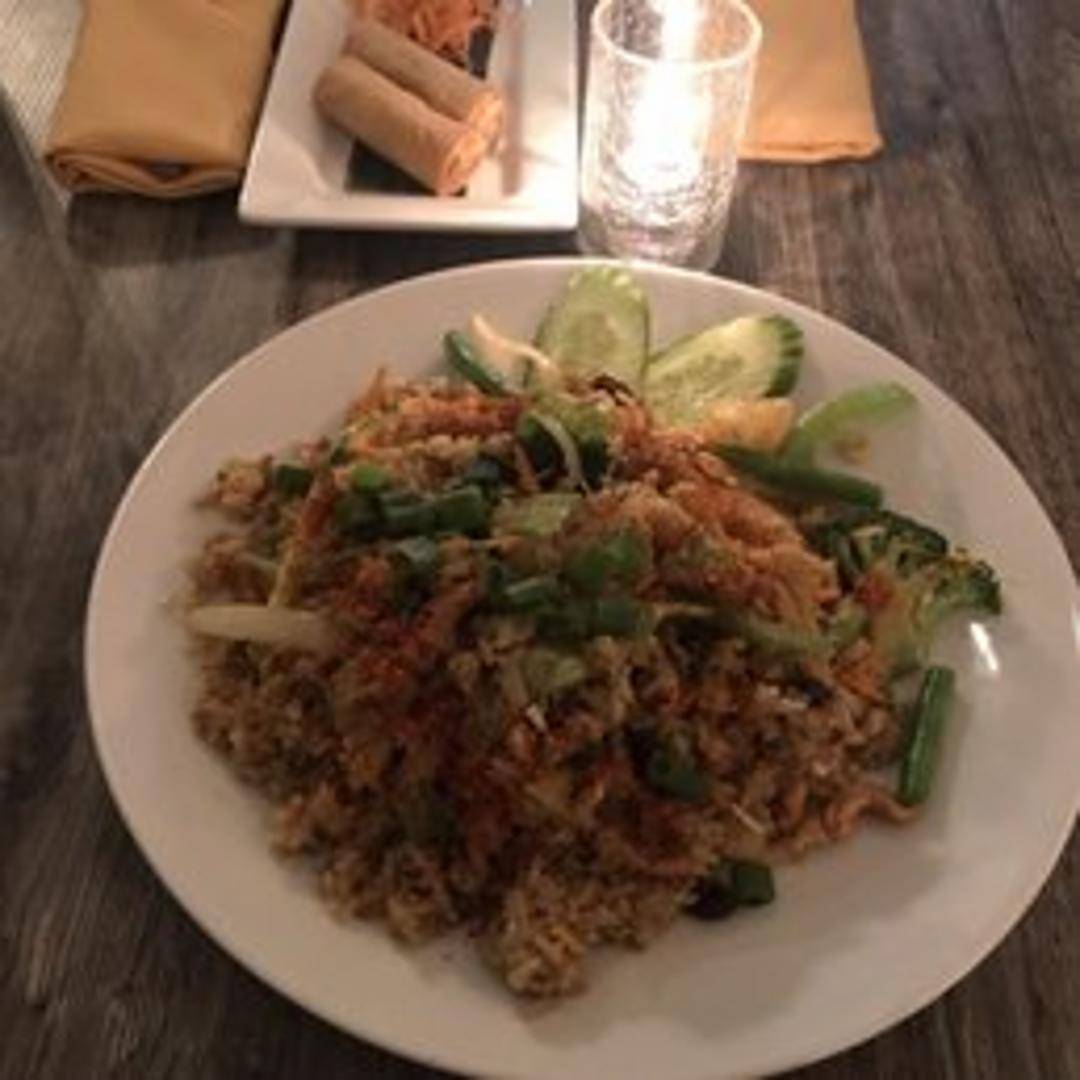 Embark on a tropical flavor adventure with our Pineapple Fried Rice. Fragrant jasmine rice is stir-fried with juicy pineapple chunks, crunchy cashews, sweet raisins, and your choice of protein. Often subtly spiced with curry powder, this colorful dish is beautifully presented, sometimes served in a hollowed-out pineapple, offering a delightful balance of sweet and savory notes.