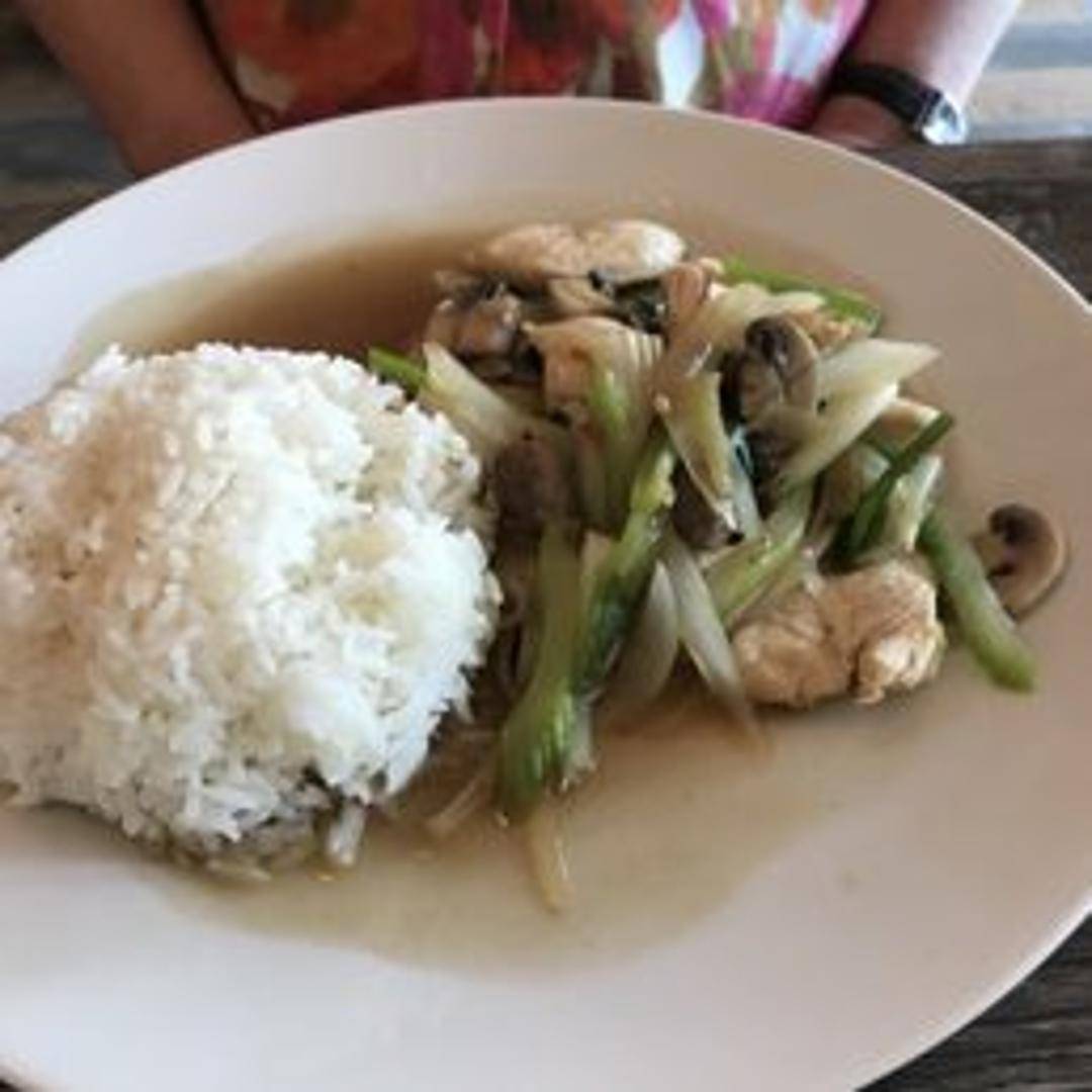 Tender pieces of chicken stir-fried with an abundance of fresh ginger slices, providing a distinct aromatic and subtly spicy flavor. This dish is typically prepared with onions, mushrooms, and bell peppers in a savory brown sauce, offering a harmonious blend of textures and tastes.