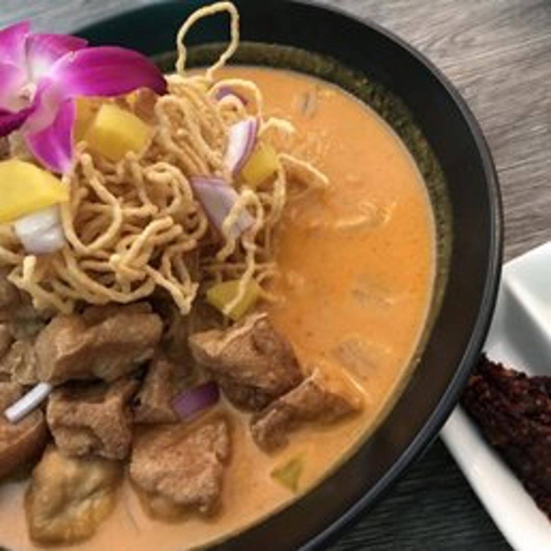 Savor our distinctive Northern Thai Noodle dish, a culinary journey to the vibrant streets of Chiang Mai. This unique noodle preparation combines aromatic herbs and spices with perfectly cooked noodles, showcasing the region's characteristic blend of savory, sweet, and tangy notes. Each bite is a harmonious fusion of fresh ingredients and traditional Northern Thai culinary artistry.