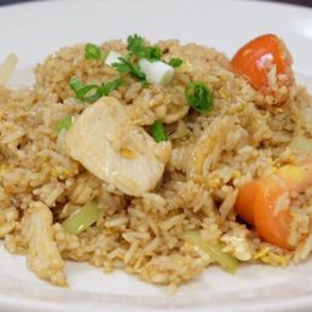 A classic comfort dish, our Chicken Fried Rice features fluffy jasmine rice wok-fried with succulent pieces of chicken, scrambled egg, crisp mixed vegetables like carrots, peas, and corn, and a savory blend of sauces. A timeless favorite, it's a hearty and flavorful meal on its own or a perfect accompaniment to any Thai entree.