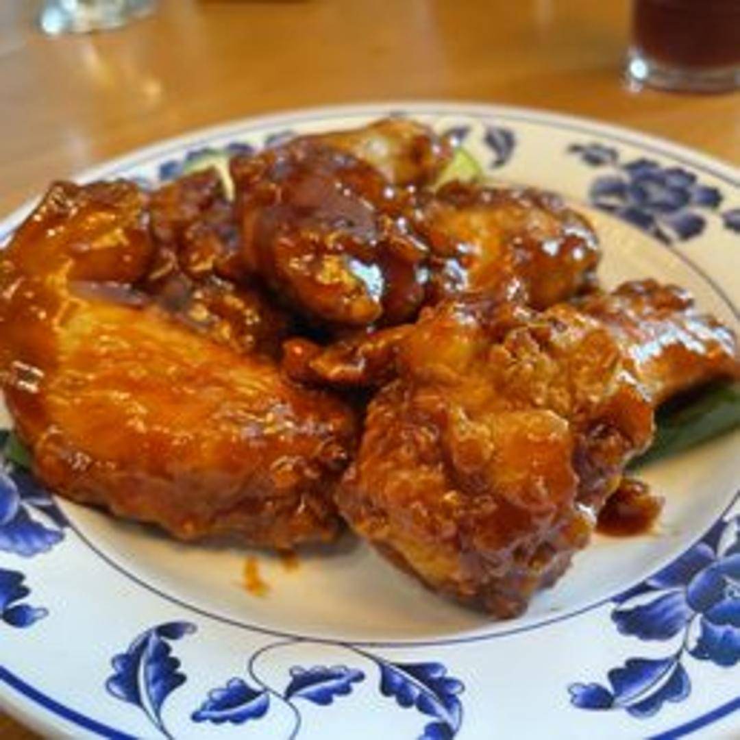 Crispy and succulent Bangkok-style chicken wings, perfectly seasoned and fried to a golden crisp. These flavorful wings offer a delightful crunch on the outside and tender meat within, often served with a sweet and tangy dipping sauce that perfectly complements their savory profile.