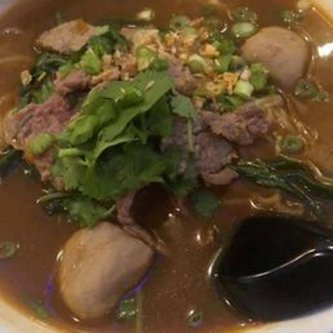 Savor a bowl of our comforting Beef Noodle Soup, a beloved Thai classic. This hearty soup features tender slices of slow-cooked beef, delicate rice noodles, and crisp bean sprouts, all submerged in a deeply aromatic, savory broth simmered for hours with traditional Thai herbs and spices like star anise and cinnamon. A warm and fulfilling dish, perfect for a satisfying meal.