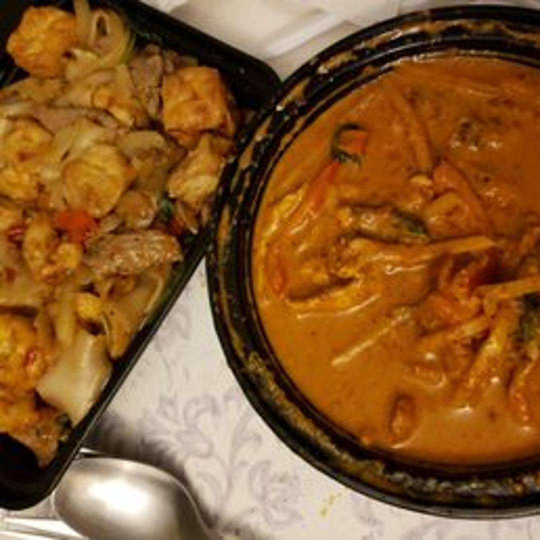 A classic Thai red curry featuring a rich and aromatic coconut milk base, infused with vibrant red chili paste, bamboo shoots, bell peppers, and fragrant basil leaves. Served with your choice of protein, this dish offers a harmonious balance of savory, sweet, and spicy flavors, embodying the heart of traditional Thai cuisine.