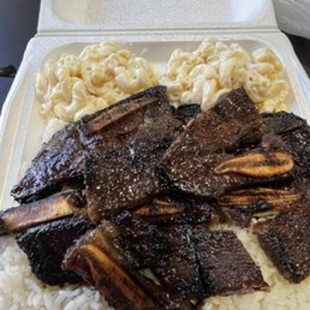 Tender, marinated Korean-style short ribs, also known as Kalbi, grilled until caramelized and flavorful. Served with a side of steamed rice and kimchi.
