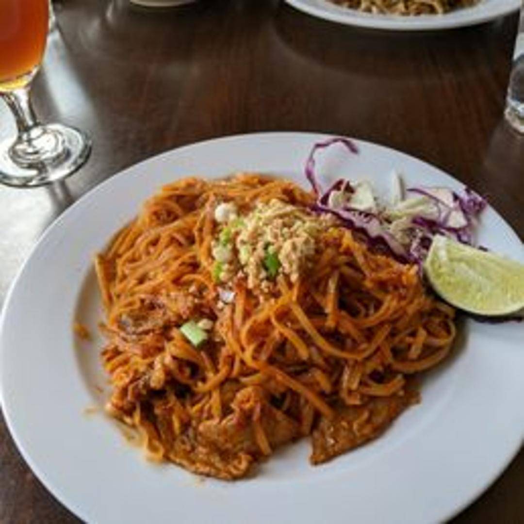Rice noodles stir-fried with eggs, bean sprouts, tofu, peanuts, and your choice of protein in a sweet and tangy tamarind sauce.