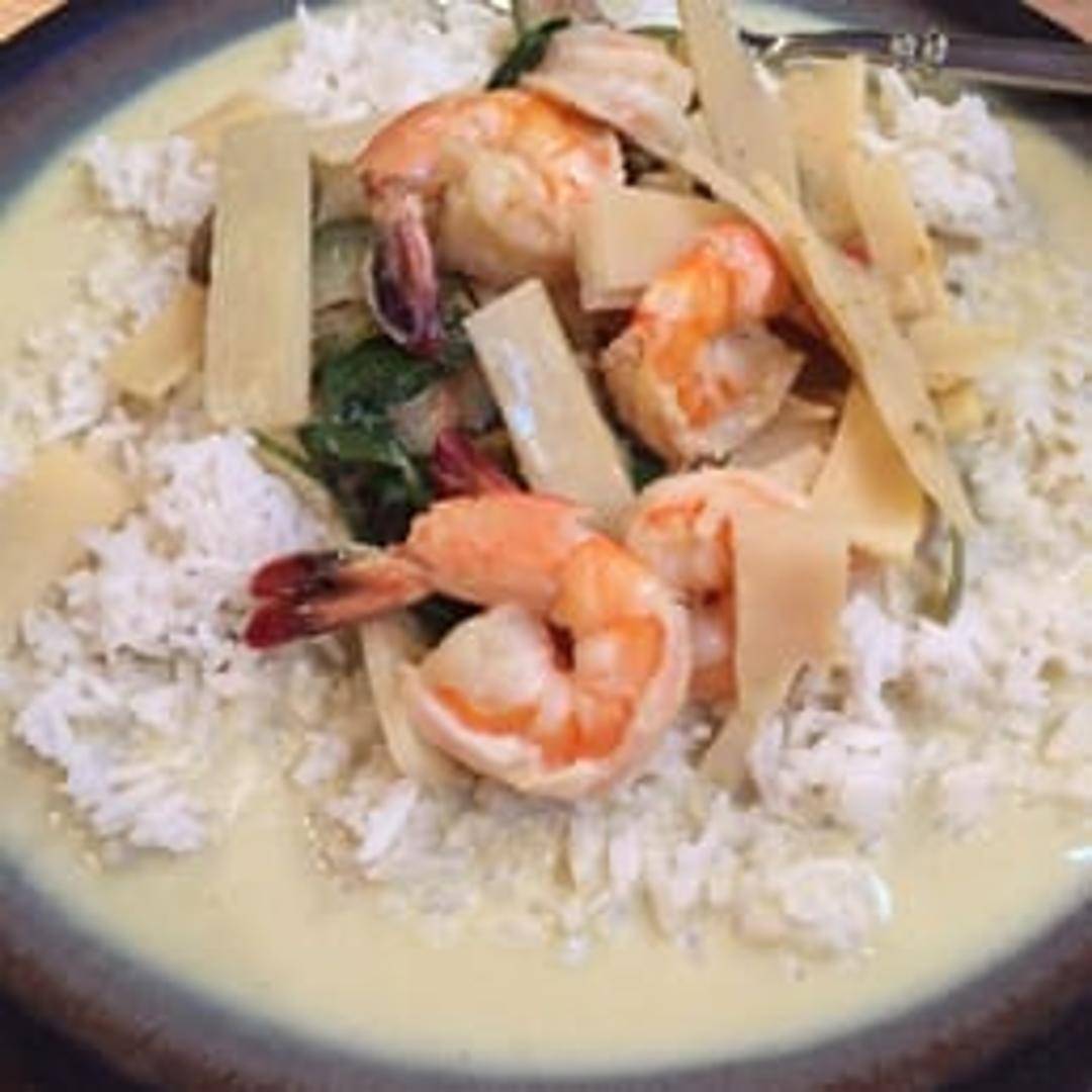 A vibrant and aromatic Thai green curry prepared with rich coconut milk, bamboo shoots, Thai eggplant, green beans, and fragrant basil leaves. Known for its intense herbal notes and a delightful spicy kick, it offers a deeply flavorful and satisfying curry experience.