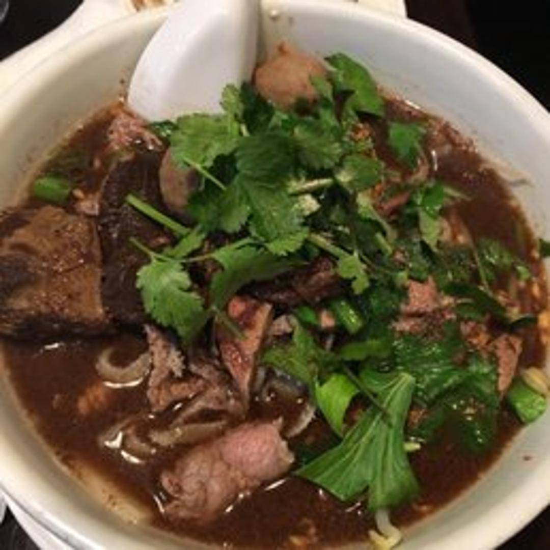 Savor the authentic taste of Thailand's traditional boat noodle soup with our Floating Market Noodle Soup. This comforting dish features a deeply rich and aromatic broth, slow-cooked to perfection, brimming with tender rice noodles, thinly sliced meats, meatballs, morning glory, and crisp bean sprouts. It's often garnished with crispy pork rinds and fresh herbs for an truly immersive culinary experience.