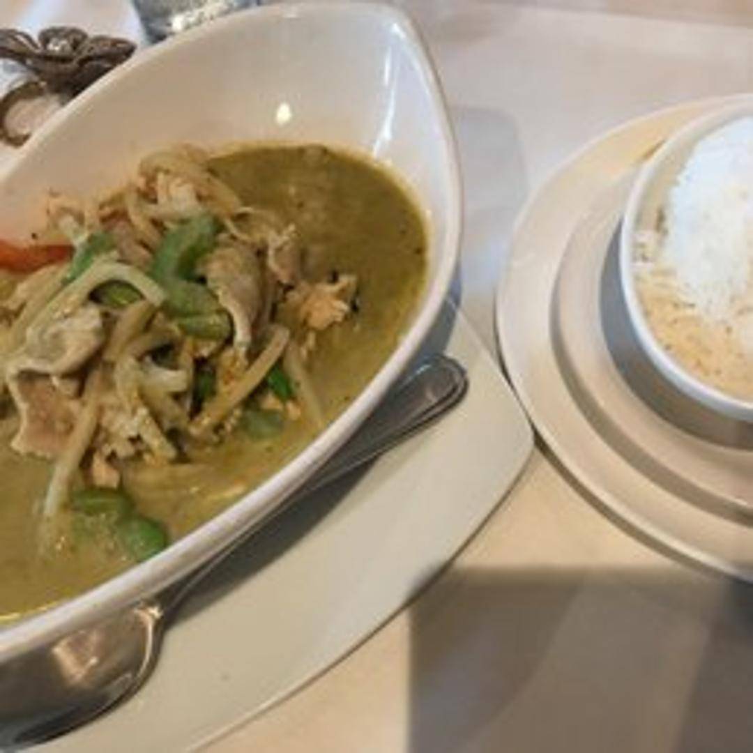 A classic Thai curry cooked with green chili paste, coconut milk, bamboo shoots, bell peppers, eggplant, basil leaves, and your choice of protein (chicken, beef, pork, tofu, or shrimp). Served with a side of steamed jasmine rice. This fragrant and creamy curry is rich in flavor and has a delightful spicy kick.