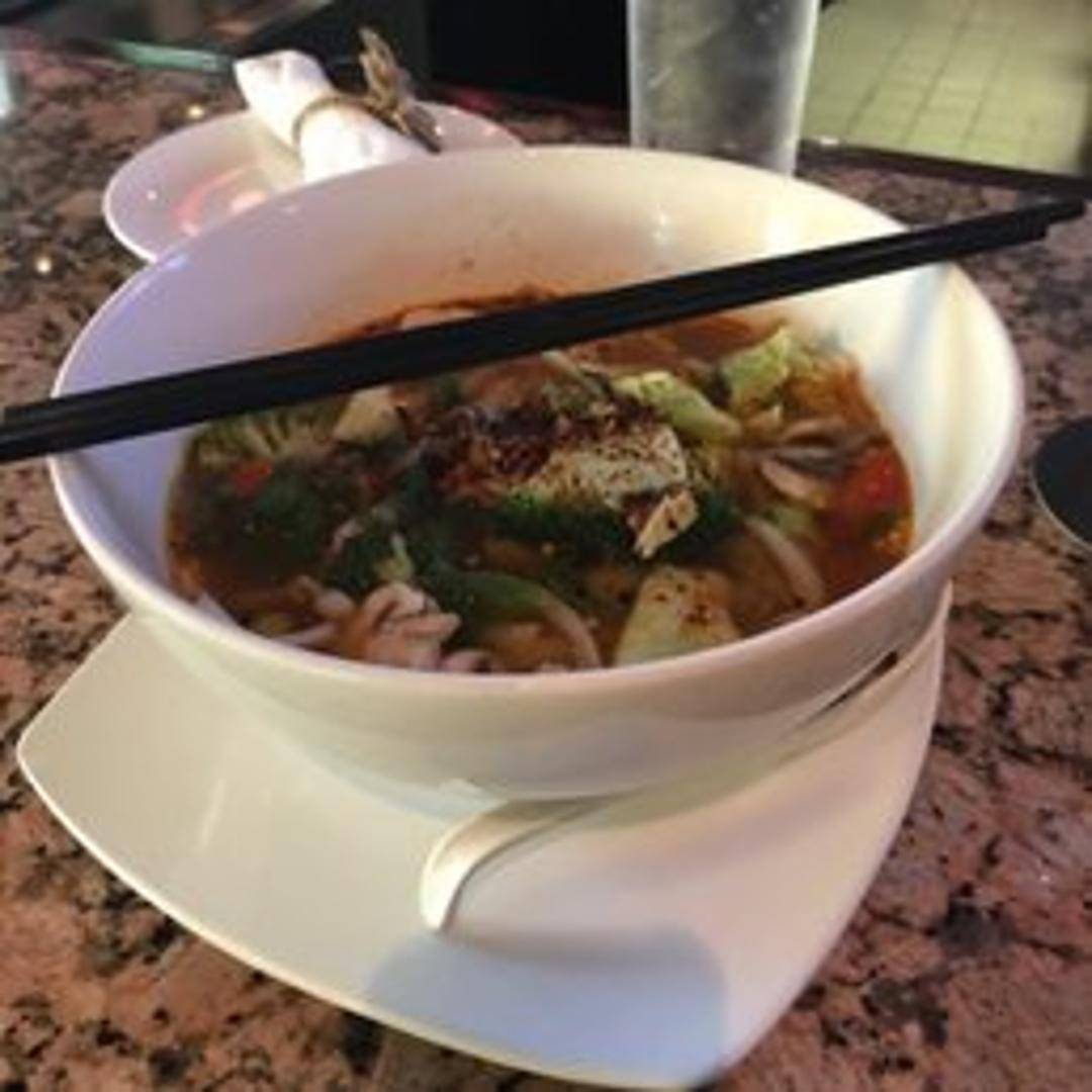 A hot and sour soup with fragrant lemongrass, galangal, kaffir lime leaves, mushrooms, tomatoes, onions, and your choice of protein (chicken, shrimp, tofu, or vegetables). Flavored with fish sauce, lime juice, and chili peppers for a spicy and aromatic experience.