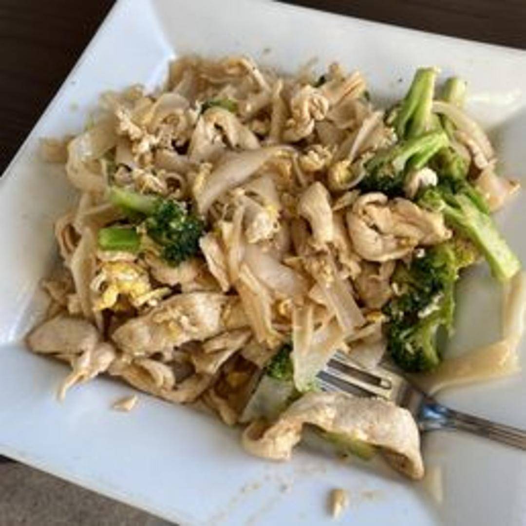 Wide rice noodles stir-fried with Chinese broccoli, egg, and your choice of protein in a sweet soy sauce.