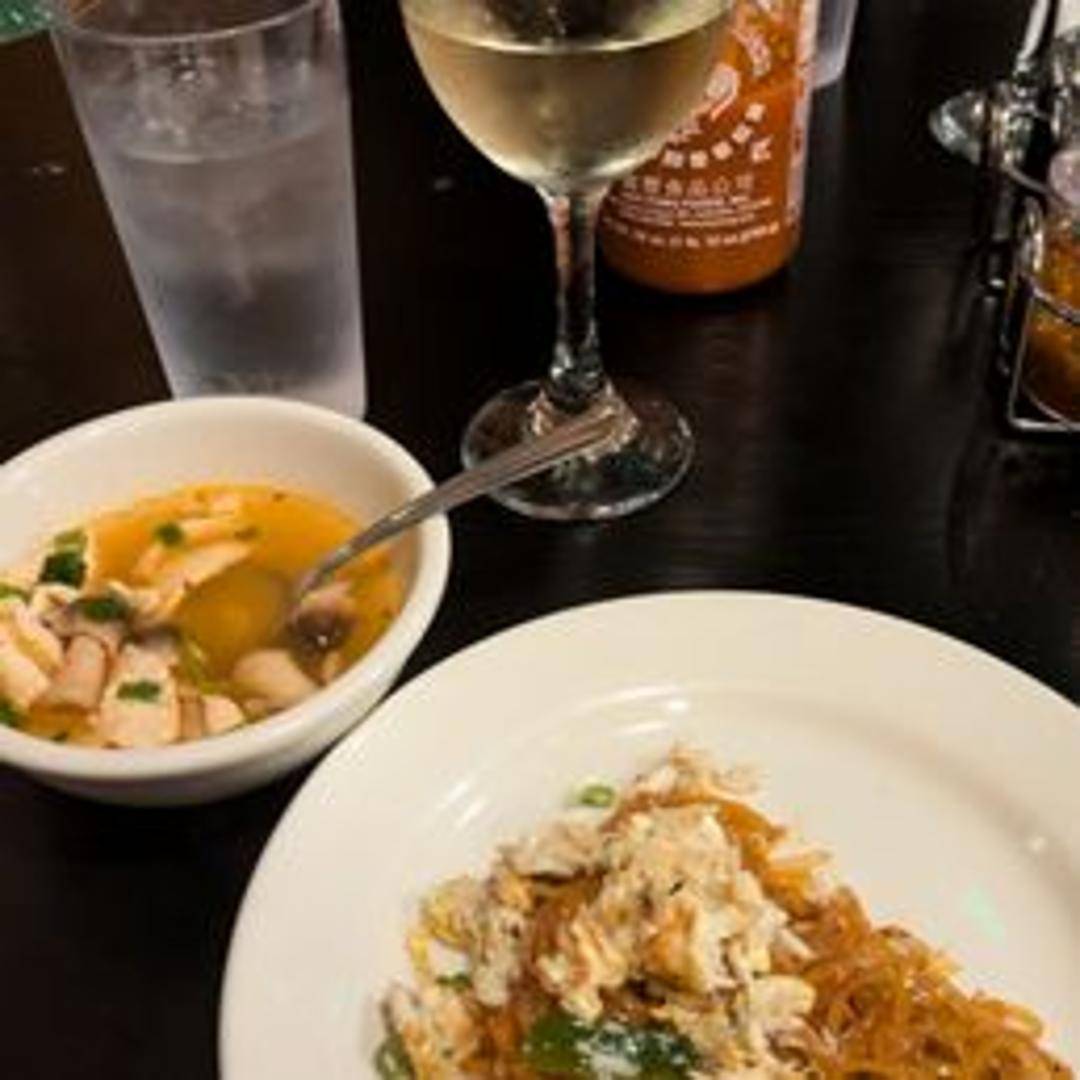 Stir-fried noodles with generous portions of crab meat, egg, onions, and scallions.