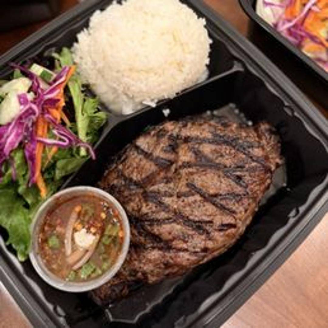 Grilled marinated steak, thinly sliced and served with a spicy dipping sauce.