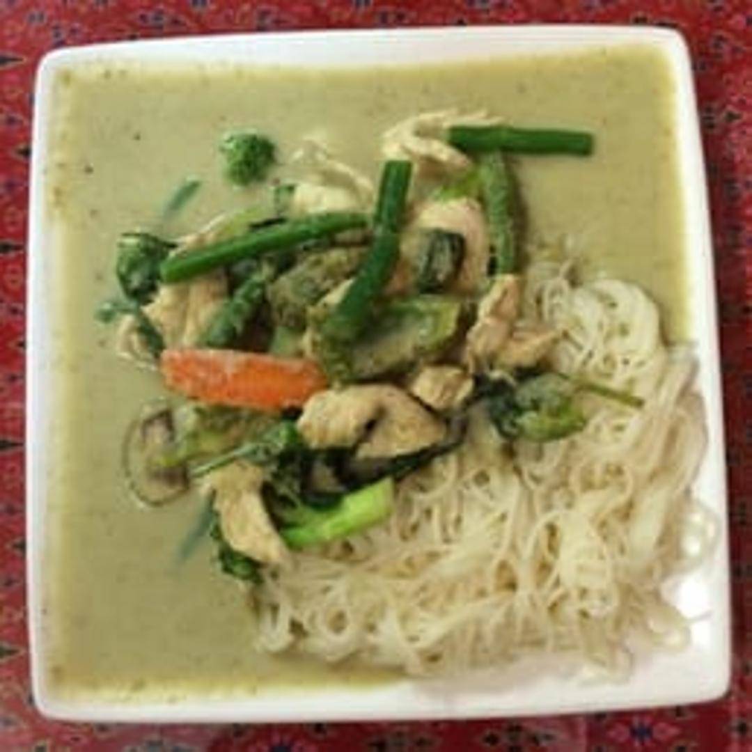 A vibrant and aromatic Thai curry known for its beautiful green hue, derived from fresh green chilies and an array of fragrant herbs. Cooked with creamy coconut milk, bamboo shoots, bell peppers, and your choice of protein, this dish offers a deliciously spicy and deeply flavorful experience with a hint of sweetness.
