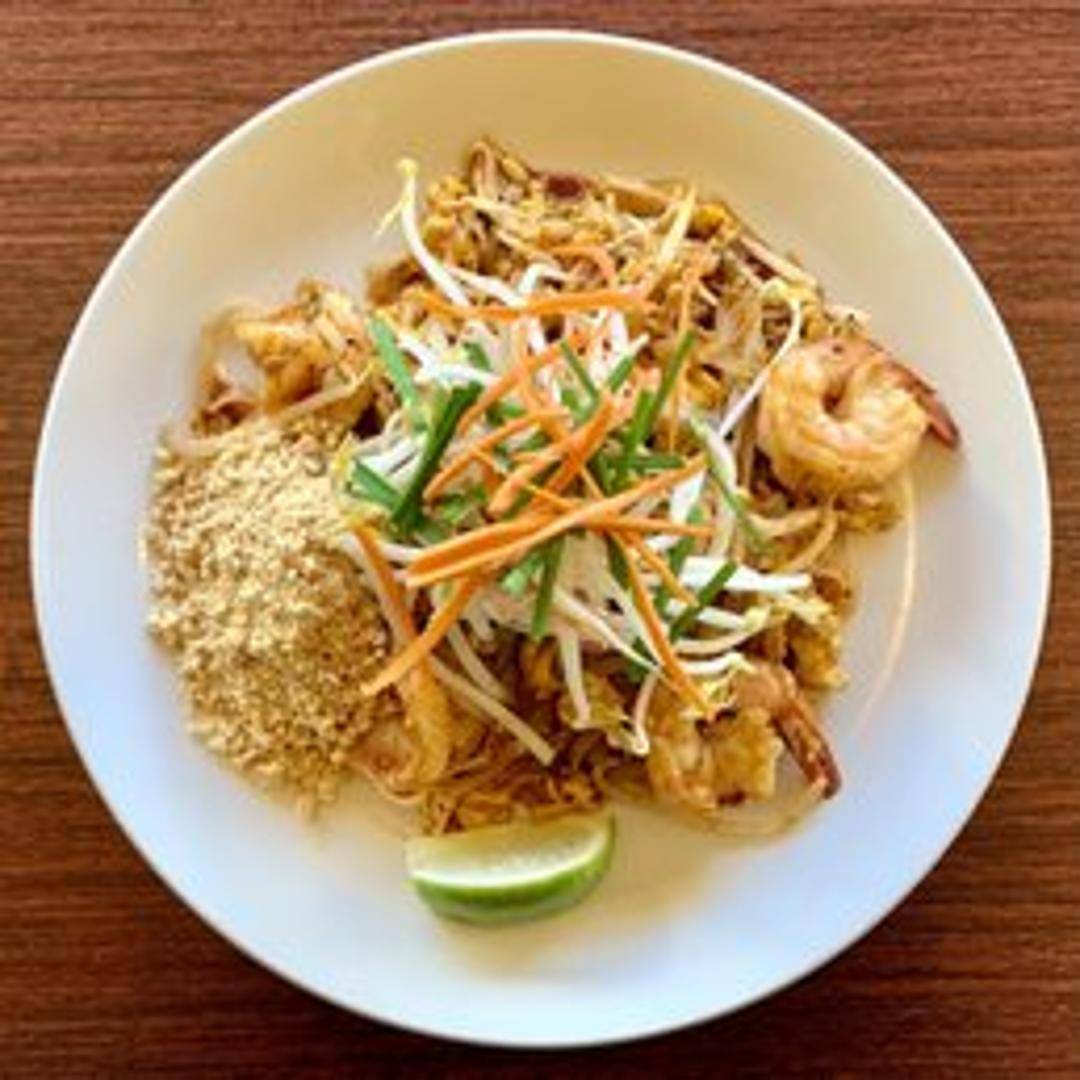 Experience the classic and beloved Pad Thai from Thai Kitchen. This iconic dish features stir-fried rice noodles, wok-tossed with your choice of protein (typically chicken, shrimp, or tofu), scrambled egg, bean sprouts, and scallions. It's perfectly coated in a savory-sweet and tangy tamarind-based sauce, garnished with crushed peanuts and a fresh lime wedge for an authentic and satisfying taste of Thailand.