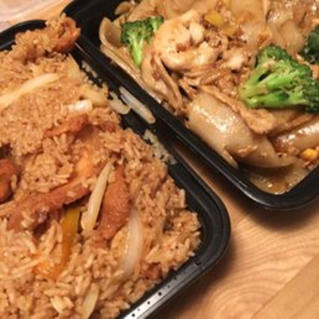 A popular and comforting stir-fried noodle dish featuring wide, flat rice noodles, tender Chinese broccoli, and your choice of protein. All ingredients are expertly tossed in a rich, savory dark soy sauce, creating a dish known for its slightly charred aroma and delightful texture.