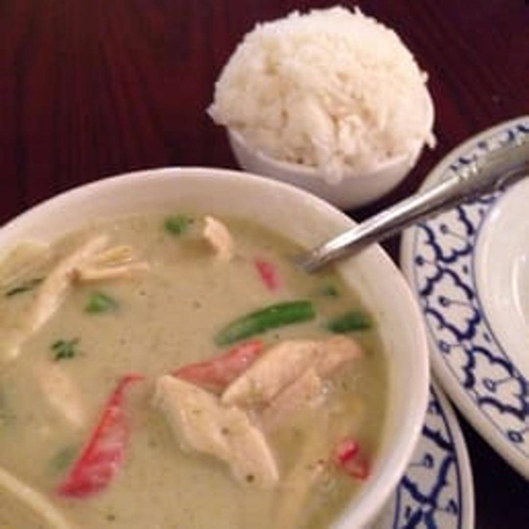 Tender pieces of chicken simmered in a rich and aromatic Thai curry sauce, made with coconut milk, fragrant spices, and fresh herbs. Served with a side of steamed jasmine rice. Choose your preferred level of spice, from mild to very hot.