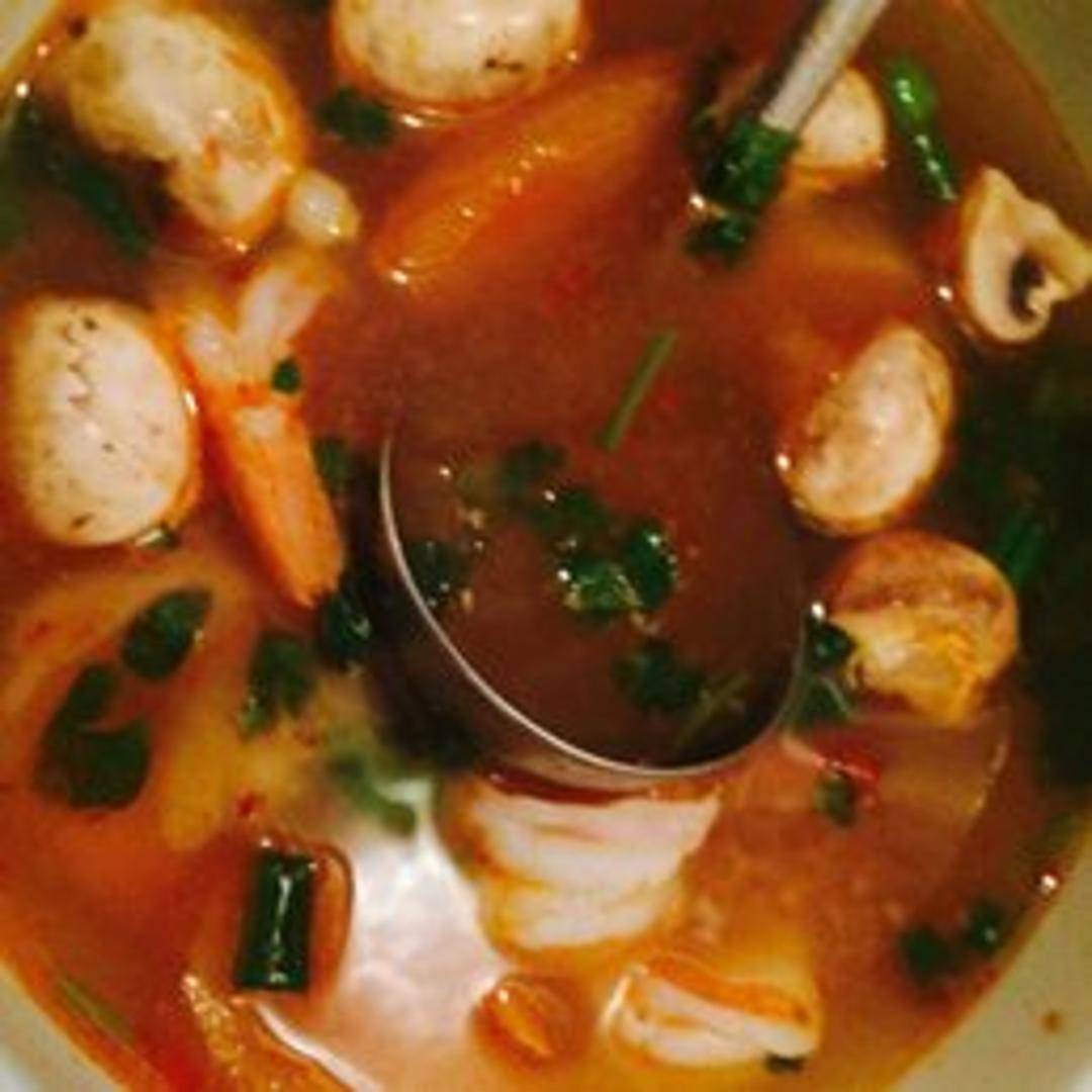 A hot and sour Thai soup with fragrant herbs, lemongrass, galangal, kaffir lime leaves, mushrooms, tomatoes, onions, and your choice of protein. Infused with chili paste and lime juice for a spicy and tangy flavor.
