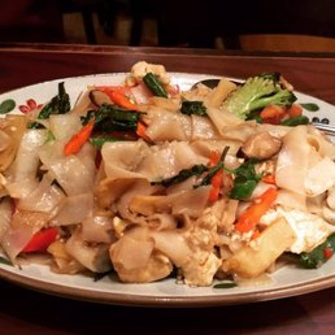 Wide rice noodles stir-fried with basil, bell peppers, onions, tomatoes, and chili garlic sauce. Your choice of protein (chicken, pork, beef, tofu, or shrimp).