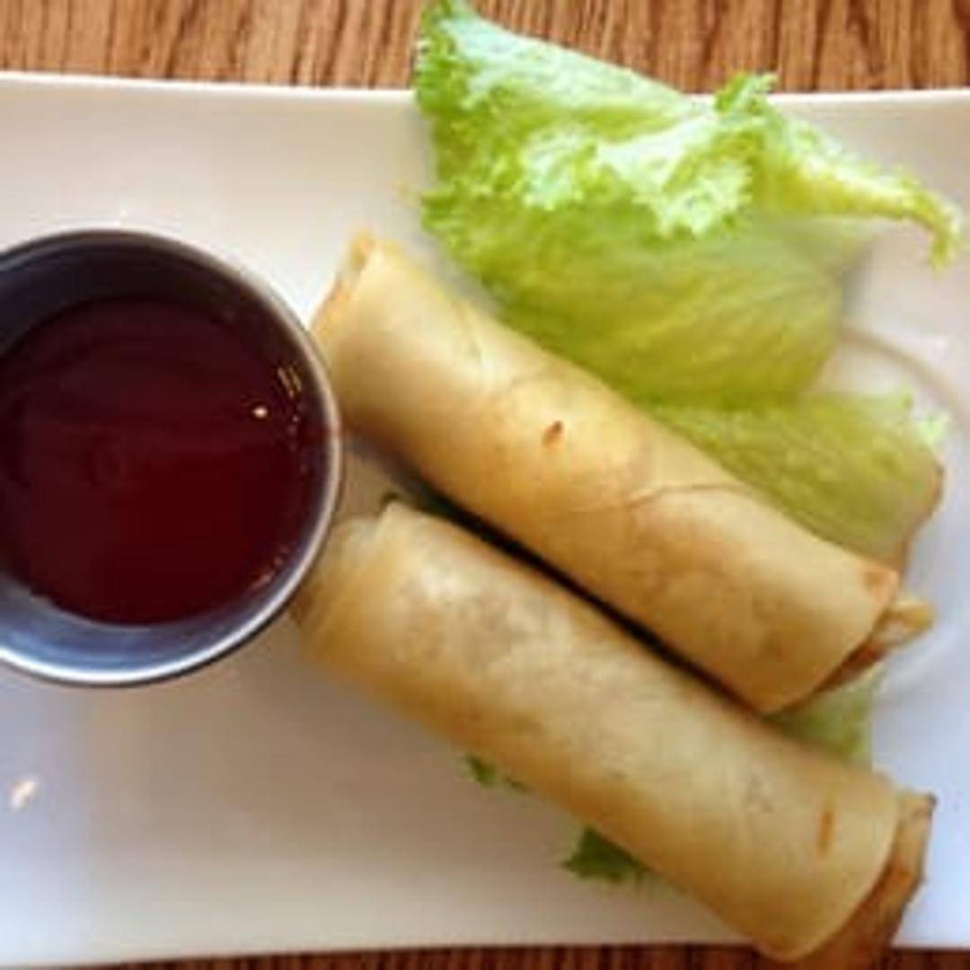 Two crispy fried egg rolls filled with shredded vegetables and glass noodles. Served with a sweet and sour dipping sauce.