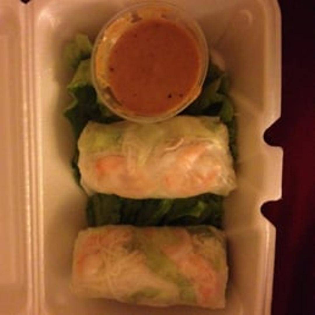 Fresh spring rolls filled with tofu, rice noodles, lettuce, carrots, and herbs. Served with peanut sauce.