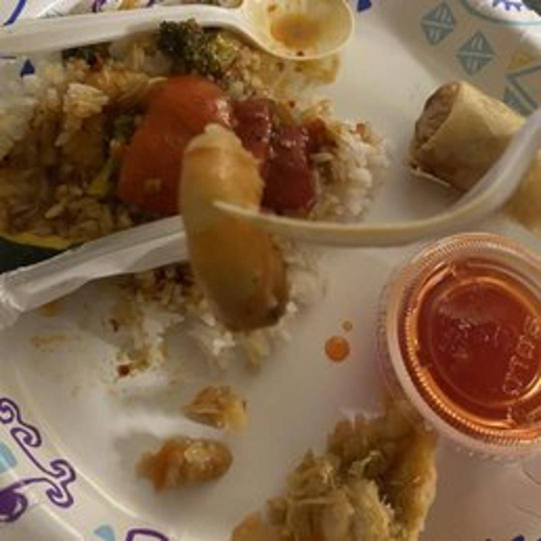 A crispy fried egg roll filled with shredded chicken, vegetables, and glass noodles. Served with a sweet and sour dipping sauce.