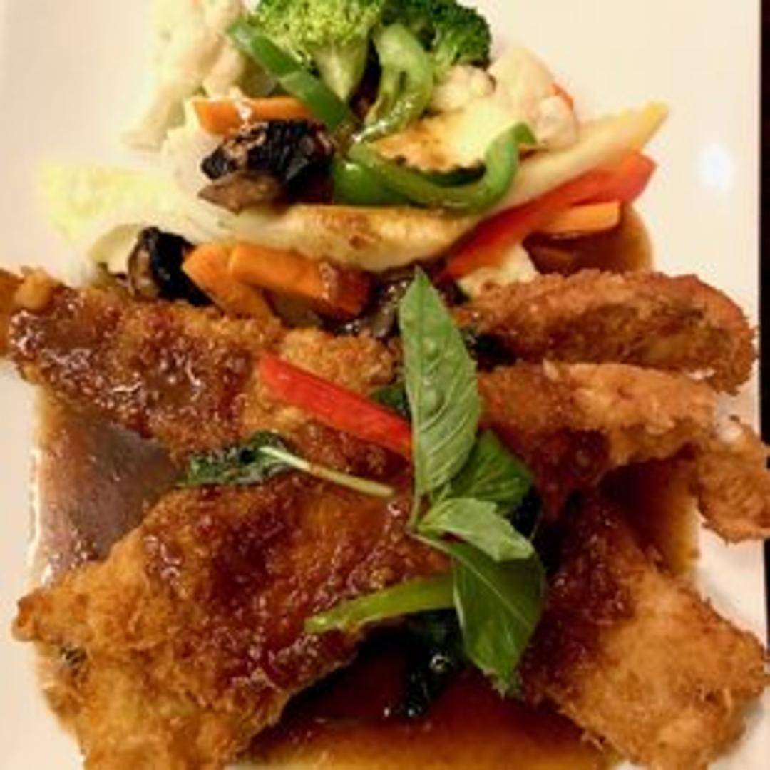 A masterpiece of textures and flavors, the Crispy Fish Tamarind Basil features a whole or filleted fish, meticulously fried until its skin achieves a perfect golden crispness while the interior remains moist and tender. It is then generously adorned with a dynamic sauce, blending the tangy sweetness of tamarind with the fresh, peppery aroma of holy basil, chili, and savory notes, creating a truly unforgettable seafood experience.