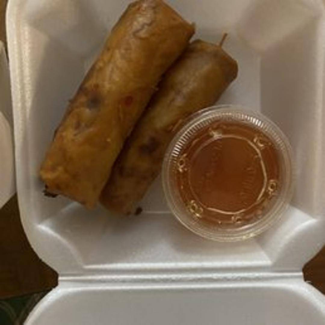 Crispy fried spring rolls, filled with a delightful mixture of glass noodles and finely shredded vegetables such as cabbage, carrots, and mushrooms. These golden-brown appetizers are perfectly seasoned and served hot with a side of sweet chili dipping sauce, making them an irresistible start to your meal.