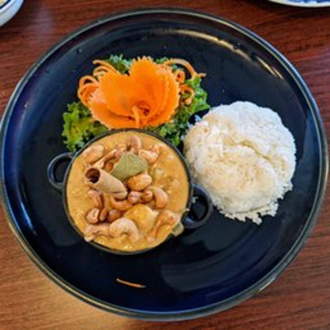 A rich, mild, and slightly sweet Thai curry made with coconut milk, potatoes, onions, carrots, and peanuts. Simmered in a Massaman curry paste with aromatic spices. Served with your choice of protein.