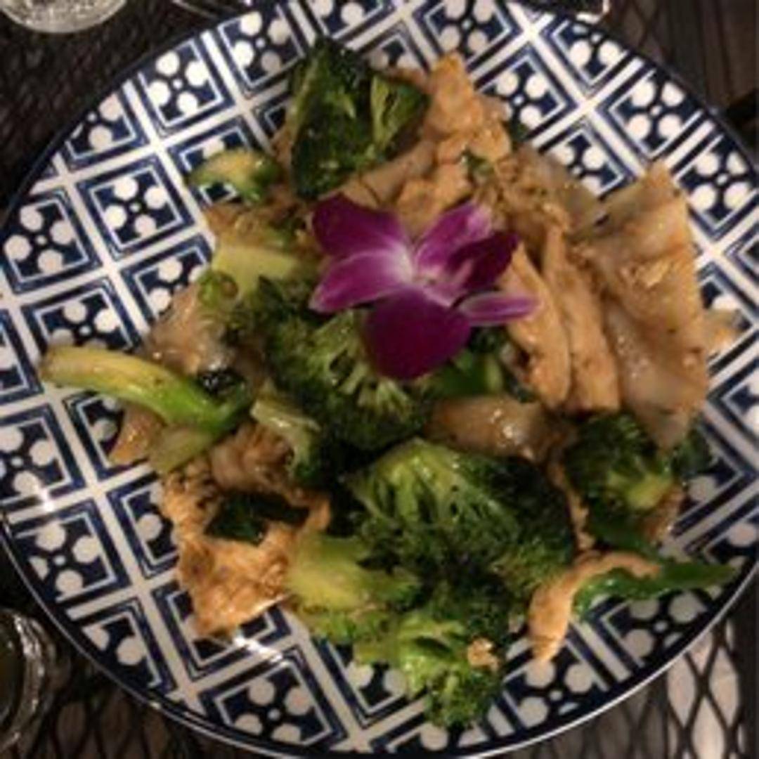 Wide rice noodles stir-fried with Chinese broccoli, egg, and your choice of protein in a sweet soy sauce.